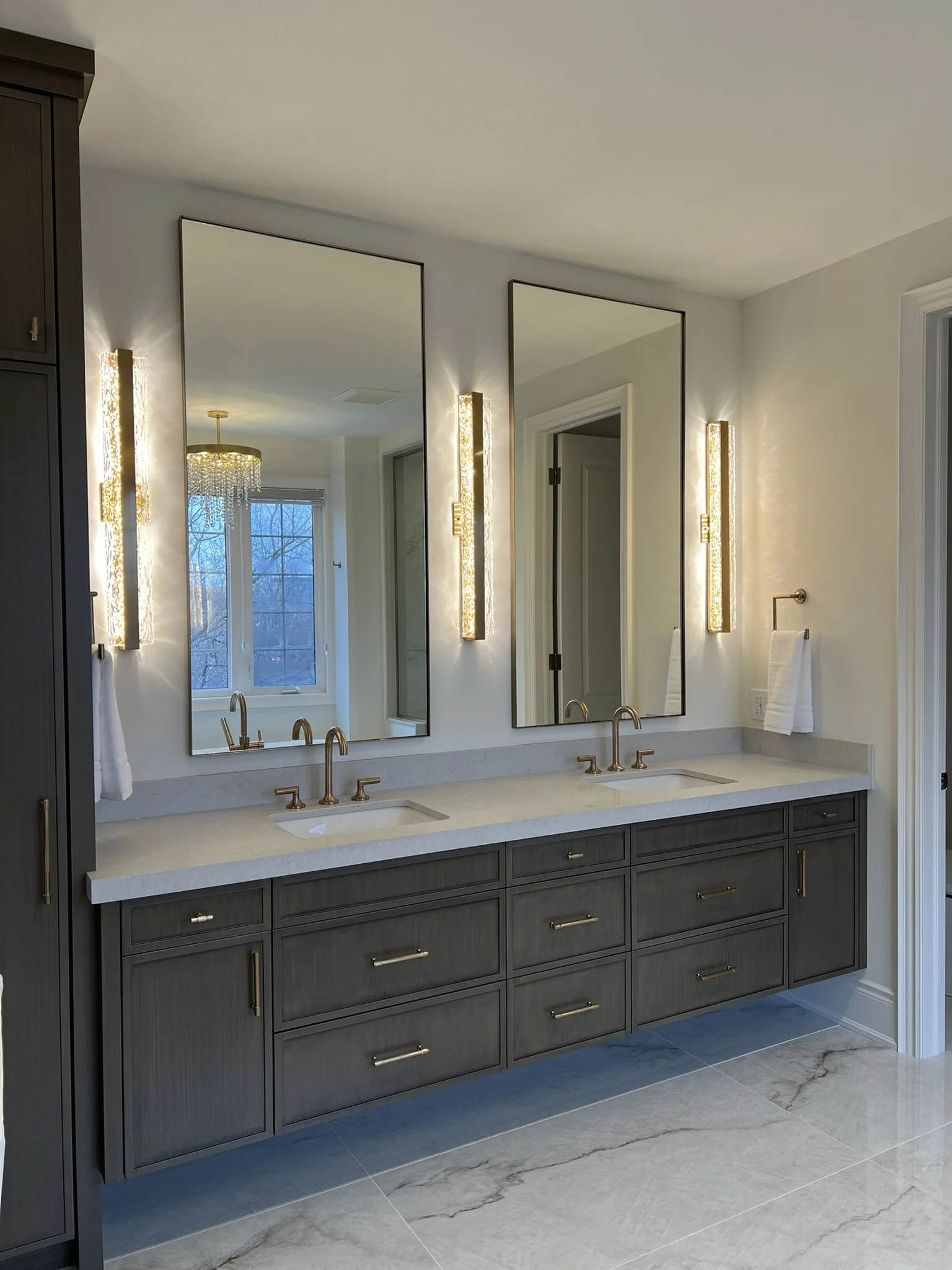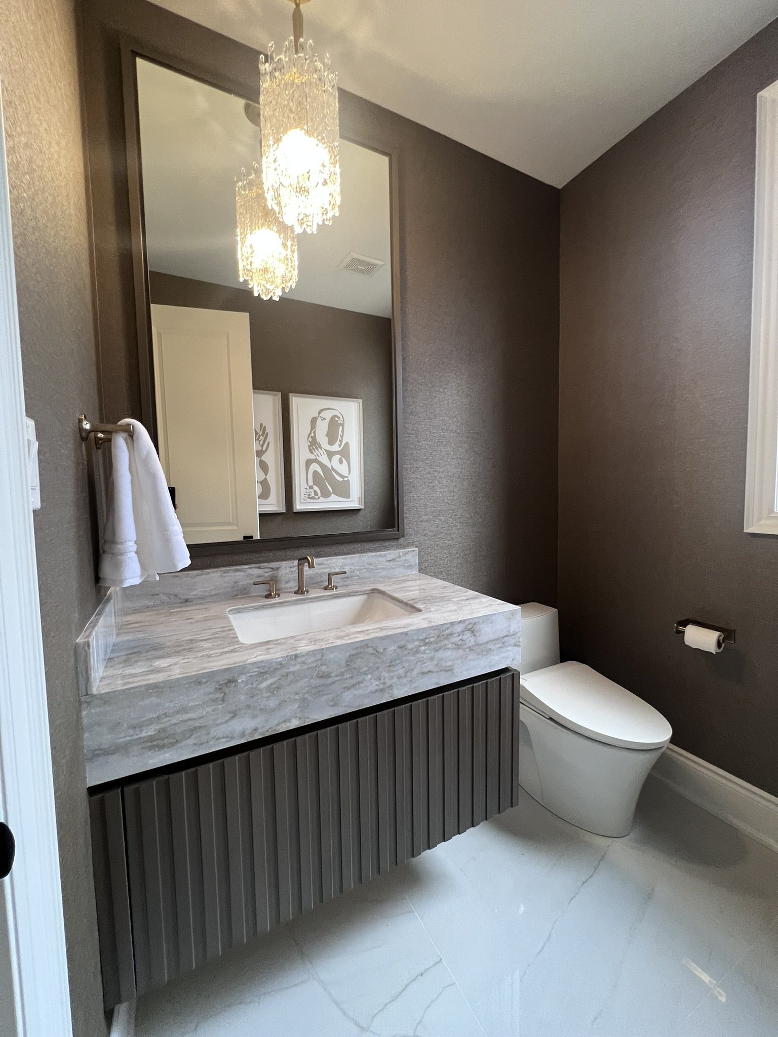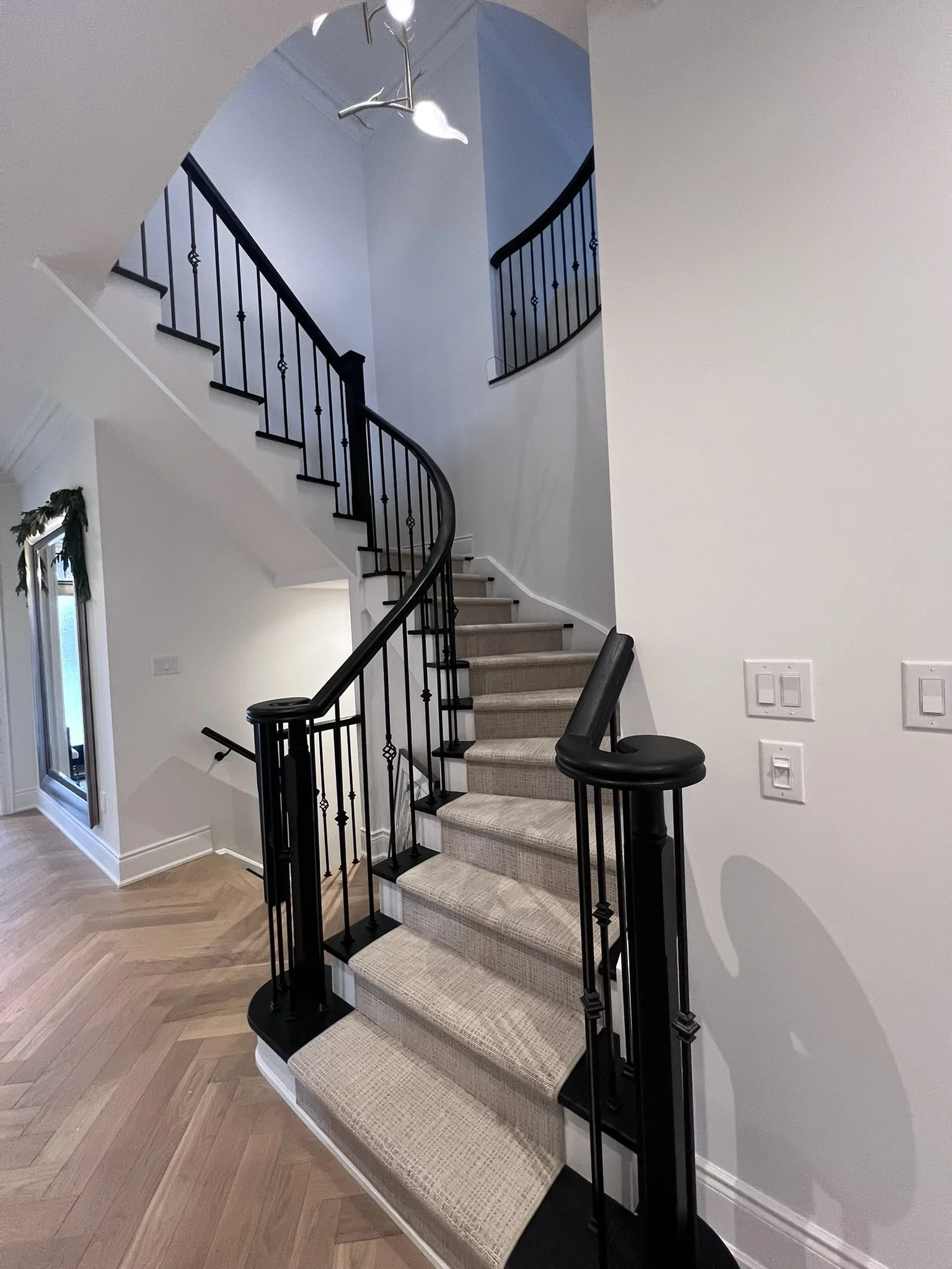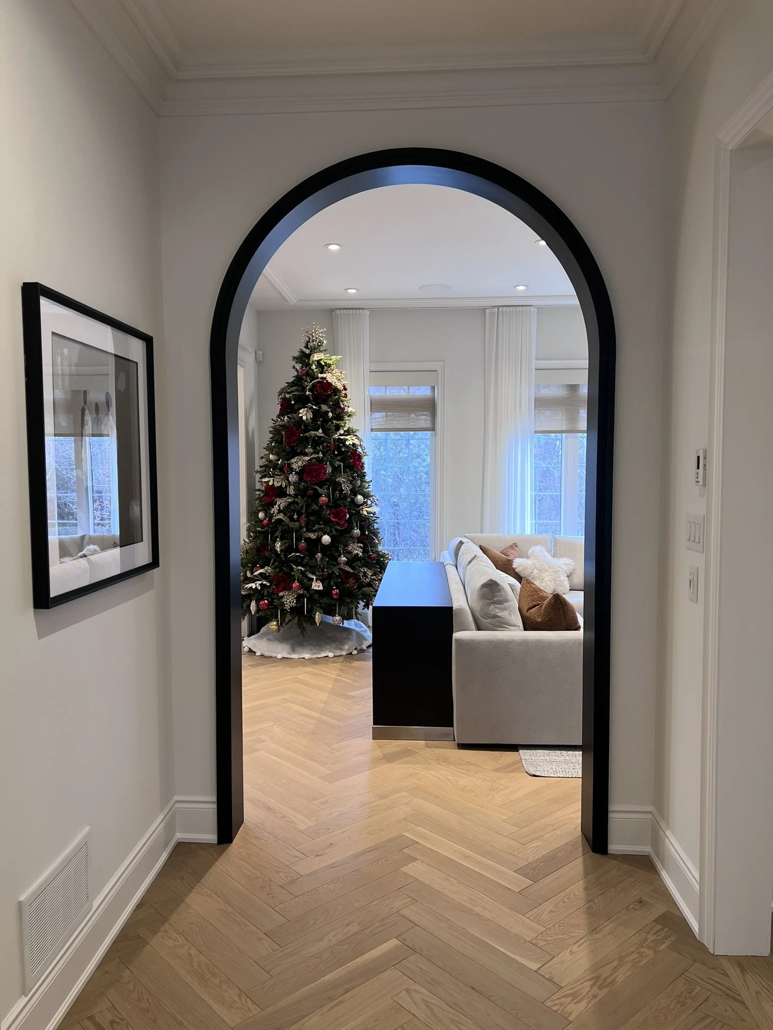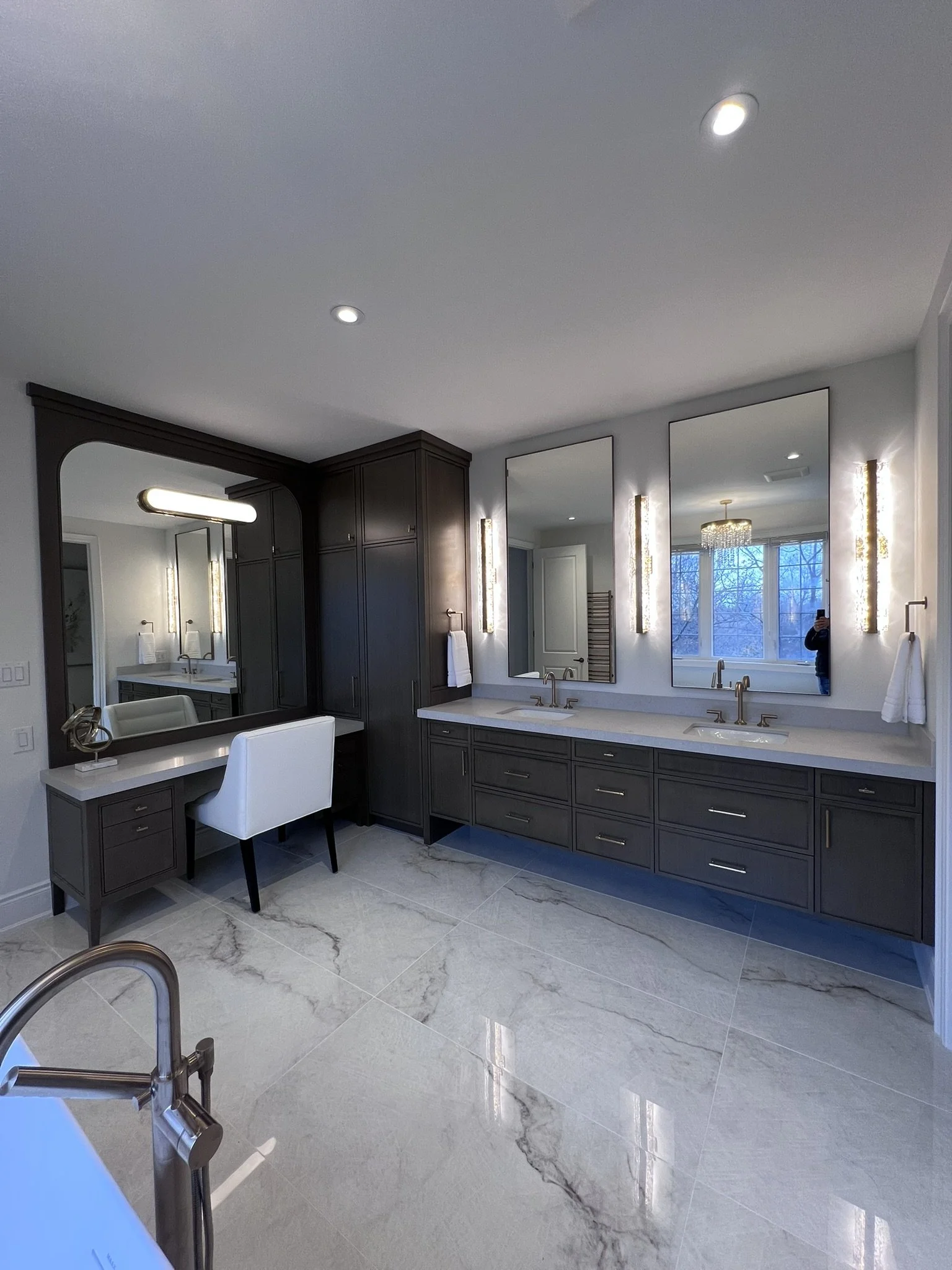 The main floor renovation included a custom kitchen renovation, powder room upgrade, fireplace installation, and new flooring throughout. On the second floor, the primary ensuite and children’s bathroom were completely redesigned, creating a functional and modern family living space.